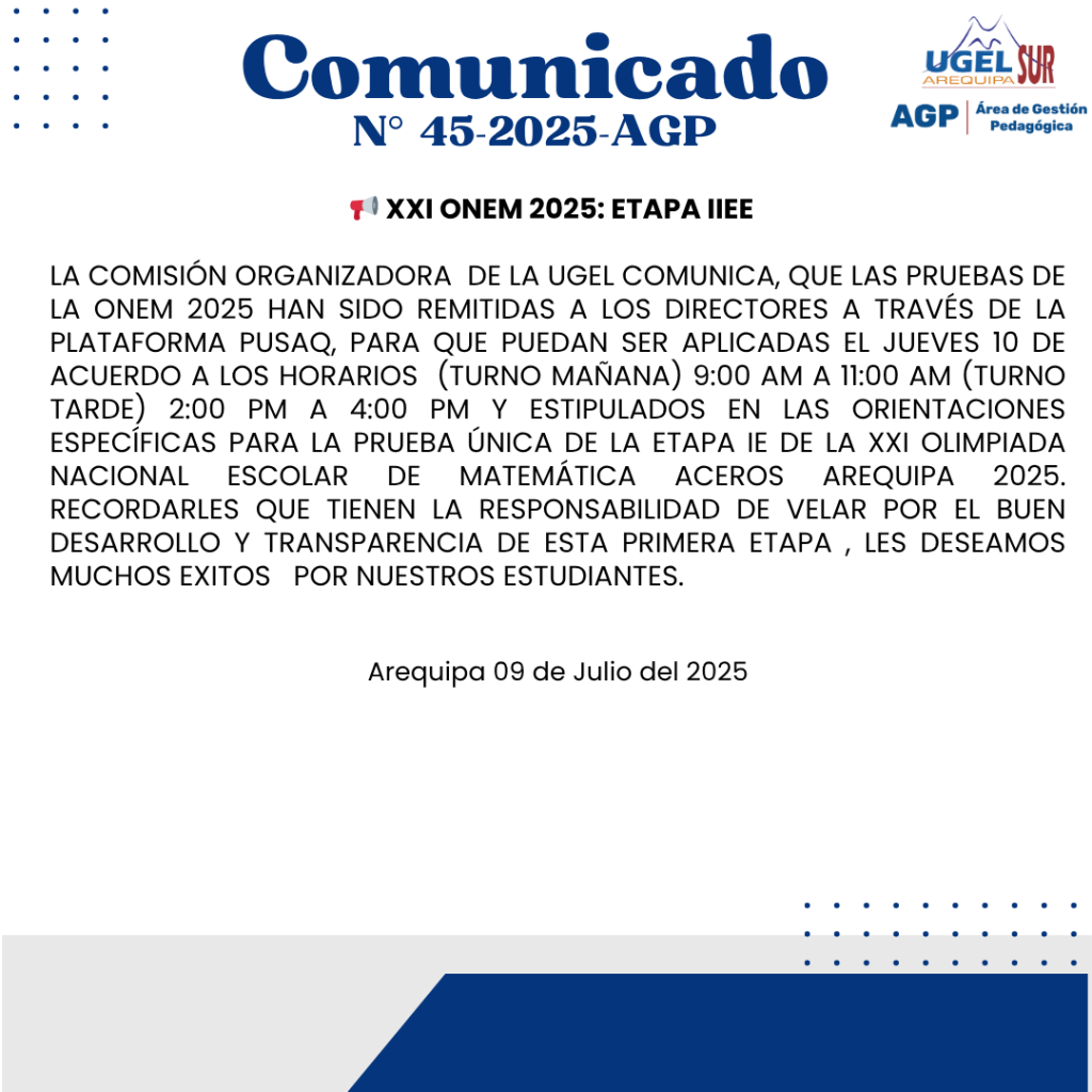 COMUNICADO – XXI ONEM 2025:ETAPA IIEE